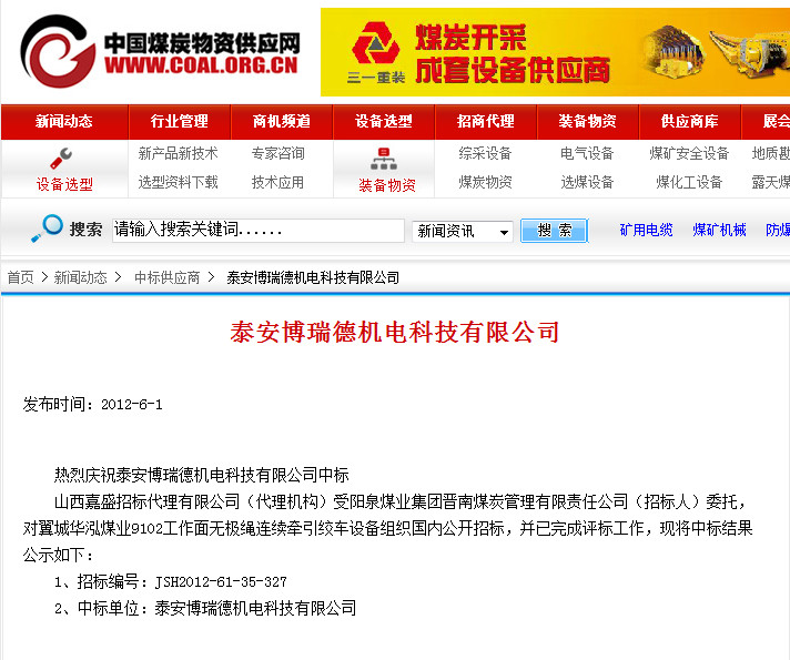 2、中標單位:泰安博瑞德機電科技有限公司